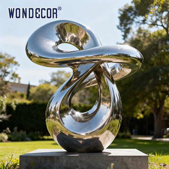 Esculpturas de aço inoxidável espelho são feitas usando forjar aço inoxidável, polir e processos de acabamento, tornando-os ideais para aplicações decorativas em jardins, parques, praças,e várias outras configurações.